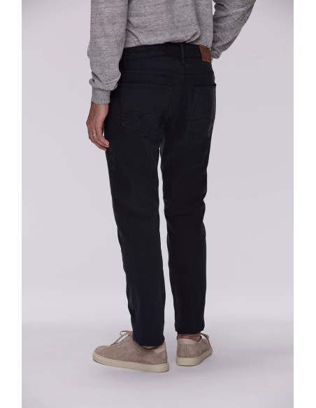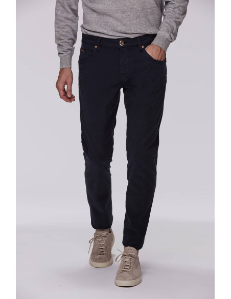 Baserat på eucalyptus träfiber som processats till en flexibel tråd är vävd till ett mjukt twill tyg. Mjuka, med stretch och en balanserad midje tilt som gör att byxan sitter uppe och inte ramlar ner baktill. Alla knappar och metalldetaljer är certifierat tillverkade med energikälla enbart från vindkraft. Med modellens passform och alla detaljer gör den dig välklädd i alla situationer.