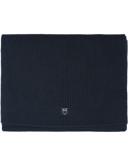 • This scarf is knitted in a heavy rib-stitch from soft cotton to give it a warm and soft feel. It is finished with an owl badge at the end.