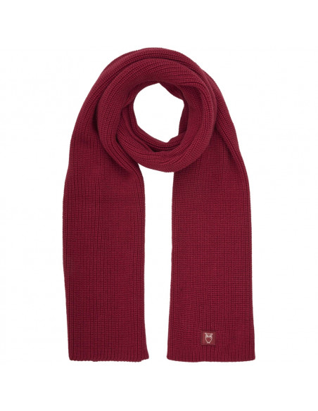 This scarf is knitted in a heavy rib-stitch from soft cotton to give it a warm and soft feel. It is finished with an owl badge at the end.