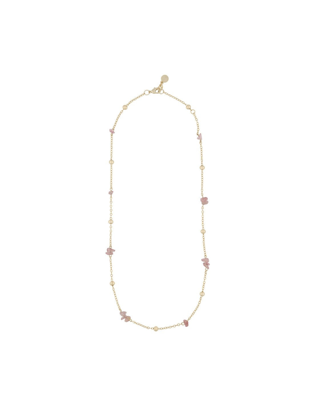 Tunt kedjehalsband med små metallkulor och naturstenar som ger en behemisk look.
