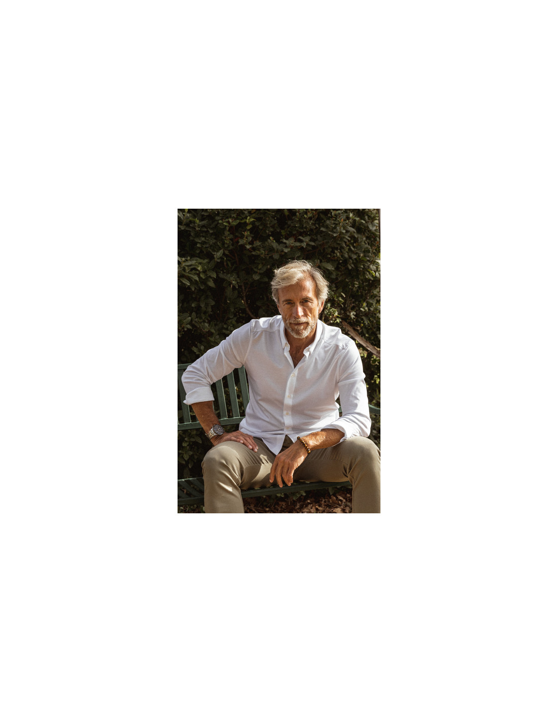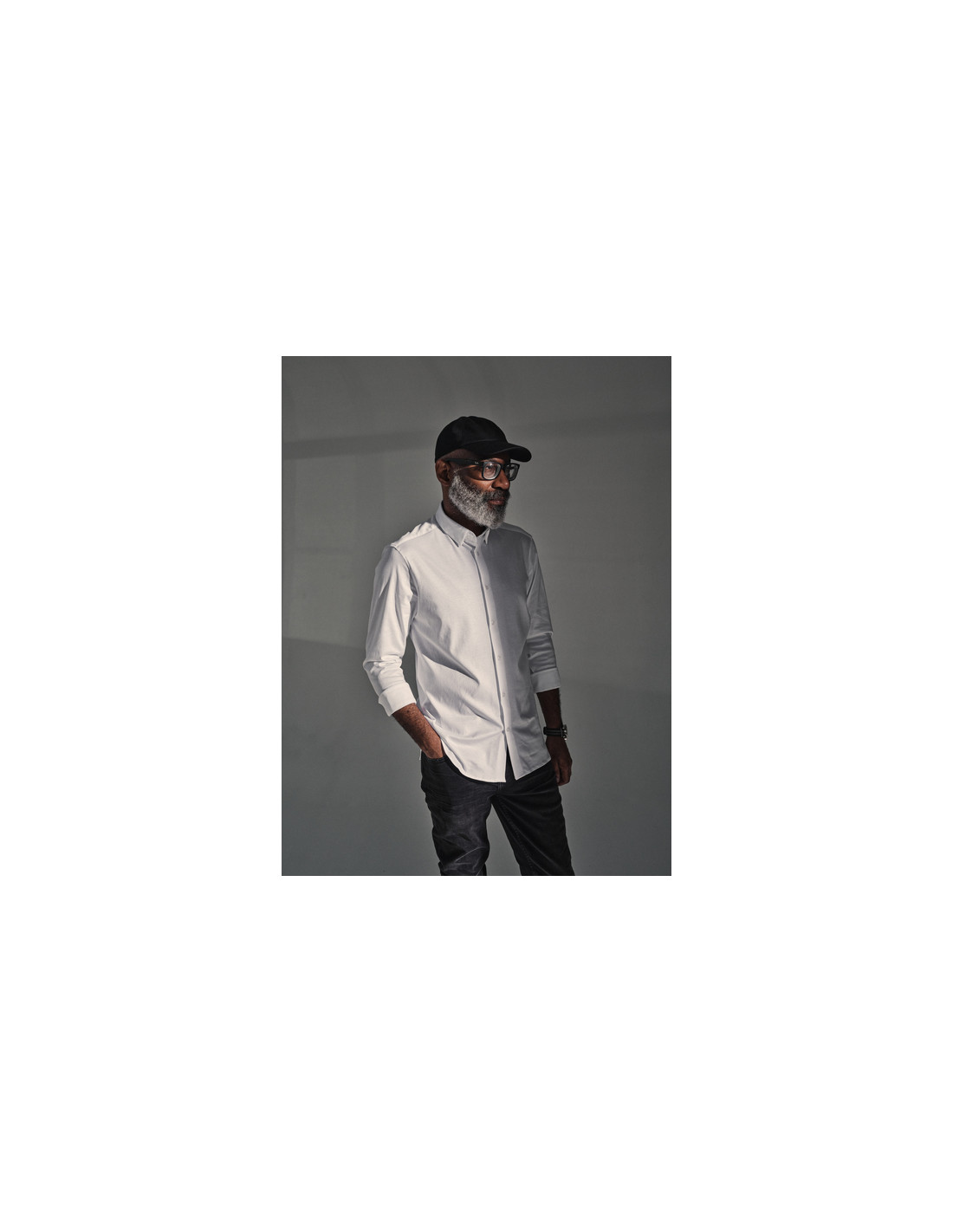• This shirt is fitted for a slimmer silhouette and is finished with a button closure, buttoned cuffs, and a hidden button-down collar.
