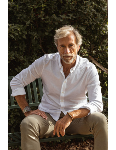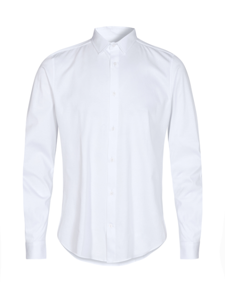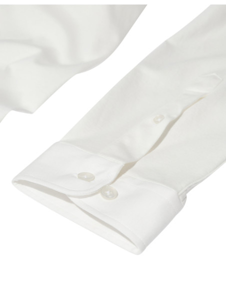 • Crafted from a double-knitted fabric, this dress shirt offers a stronger, stretchy, and more durable garment than a normal jersey.