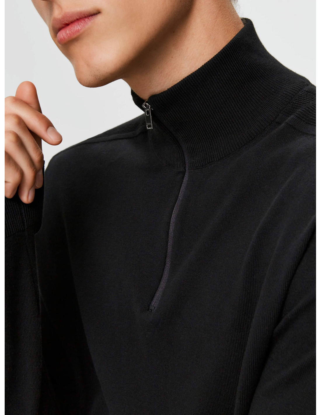 • Den har en hög hals och ett halvt blixtlås som kan stängas eller lämnas öppet, finribbade kanter och sydda detaljer vid axlarna.