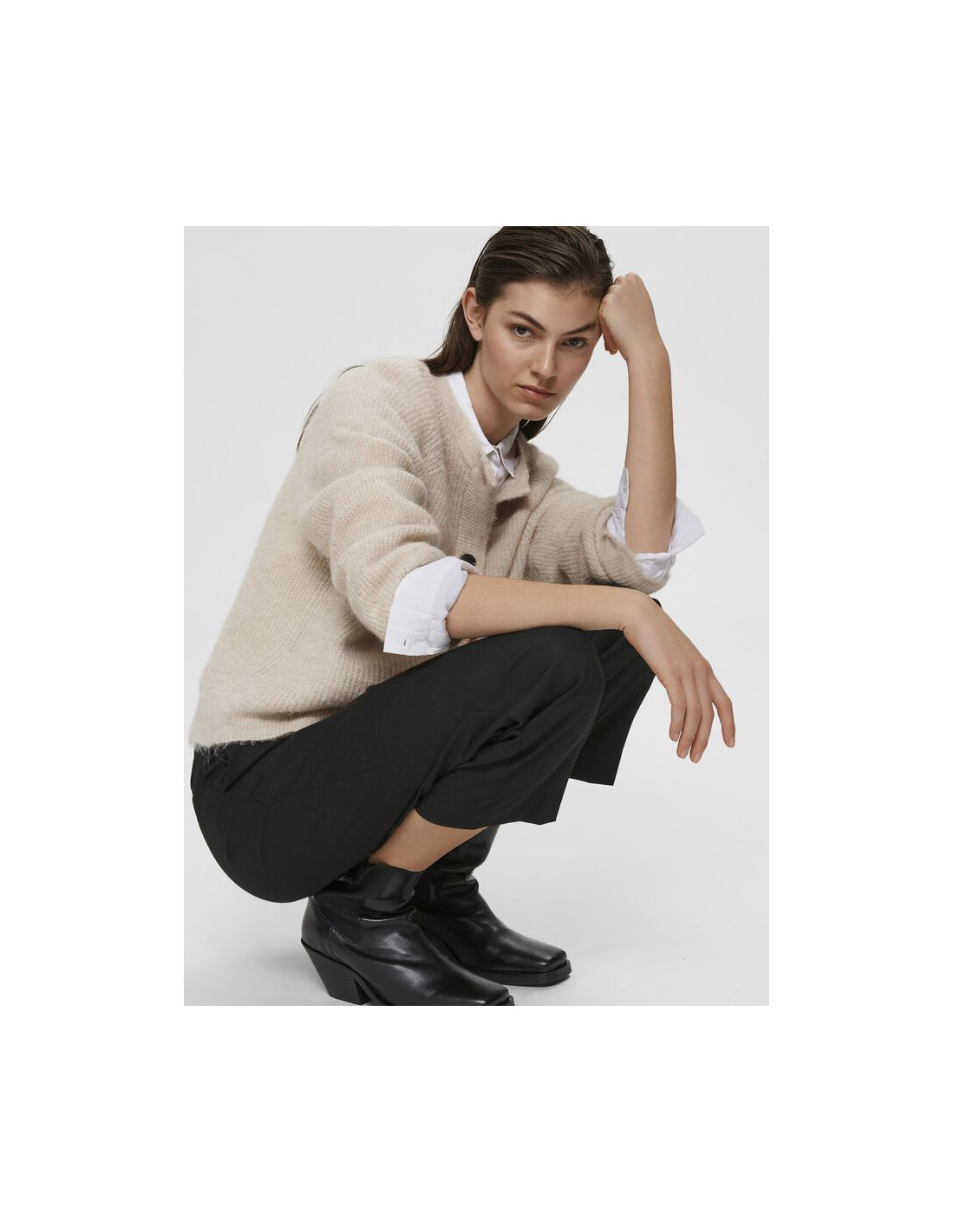 Finns det något bättre än att slänga på sig en mysig kofta en kylig dag? Denna kofta är gjord av en mjuk alpacka-ullblandning med lite stretch för extra komfort. De långa raglanärmarna har drop stitch-detaljer och slutar i åtsittande, ribbade manschetter. Vi skulle styla den med ljustvättad denim eller en minikjol i läder.