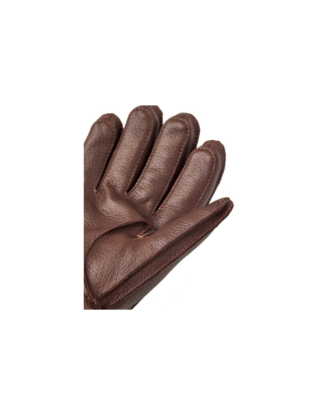 Skön fodrad vinterhandske i läder med ribbstickad mudd. En tidlös modell med förböjda fingrar som ger hög komfort. Handsken är sydd i hjortskinn, ett följsamt och poröst läder som håller värmen bra samtidigt som det har en rustik, naturlig känsla. Insidan i mjuk fleece är isolerad med Primaloft Gold syntetfyllning som håller händerna varma under kyliga vinterdagar.