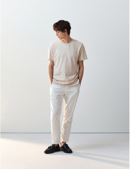Få en enkel look med denna slub-T-shirt i bomull. Den har ett karakteristiskt, texturerat utseende som gör den lätt och extremt bekväm att bära och den är gjord av 100% ekologisk bomull. Bär den med allt från träningsbyxor till denim.