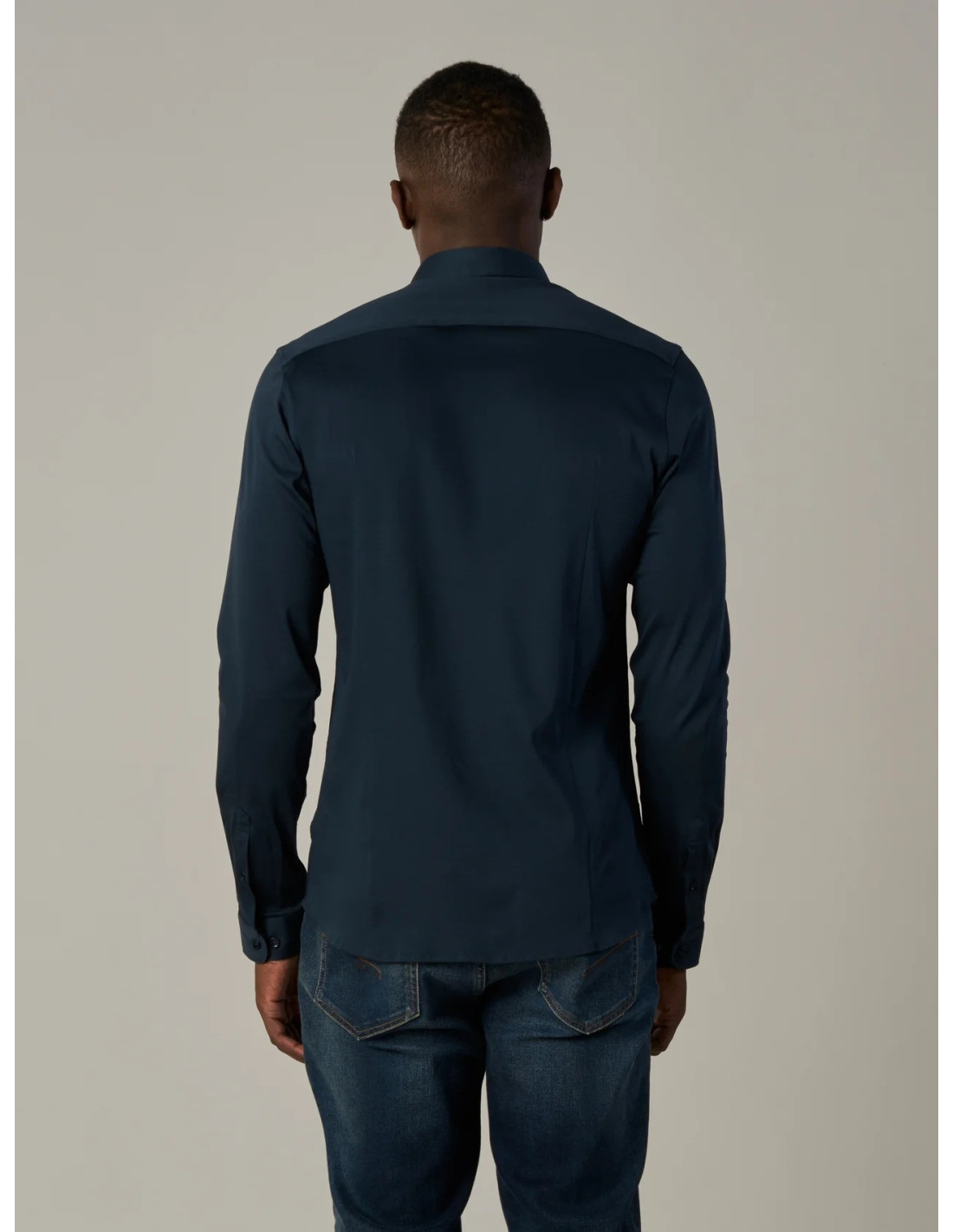 Designed with a slimmer cut for a more tailored fit, this shirt features a button front, adjustable cuffs, and a concealed button-down collar for a polished look. It's made from a robust, double-knit fabric that surpasses the typical jersey in strength, elasticity, and longevity. The material undergoes a process of double mercerization to give it a luxurious feel and look.