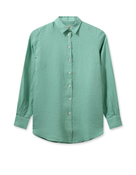Embrace laid-back vibes with this effortlessly stylish linen shirt, designed in a relaxed silhouette. The subtle details of the narrow pointy collar, button closure, and buttoned cuffs add a touch of sophistication to its cool charm. Picture it perfectly paired with skinny jeans and a pair of sneakers, creating a look that's equal parts comfort and chic.