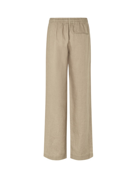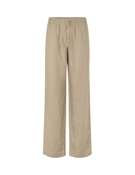 Relaxed fitting linen trousers with a straight leg silhouette. Elasticated and drawstring waist. Side seam pockets, false back welt pocket detail. 100% linen fabric with a soft drape and a lightly slubbed textured surface.