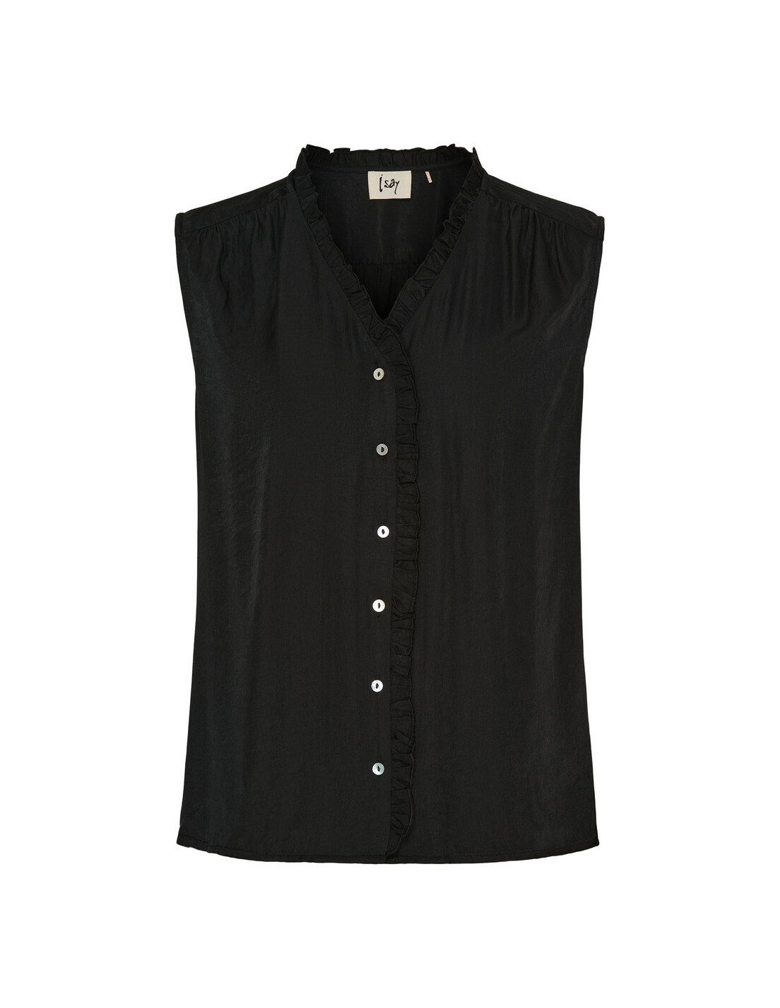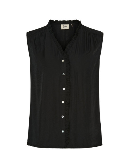 Denna superpopulära topp har en helt igenom lyxig look. Den vackra volangkanten i v-ringningen fortsätter längs med knappstängningen och ger toppen en nostalgisk signatur. Som extra touch har den diskreta, veckade detaljer vid axlarna och på ryggen. Kvaliteten är i mjuk viskosblandningen som känns skön att ha på sig hela dagen. Passformen är avslappnad och designen tidlös - en riktigt skön klassiker.