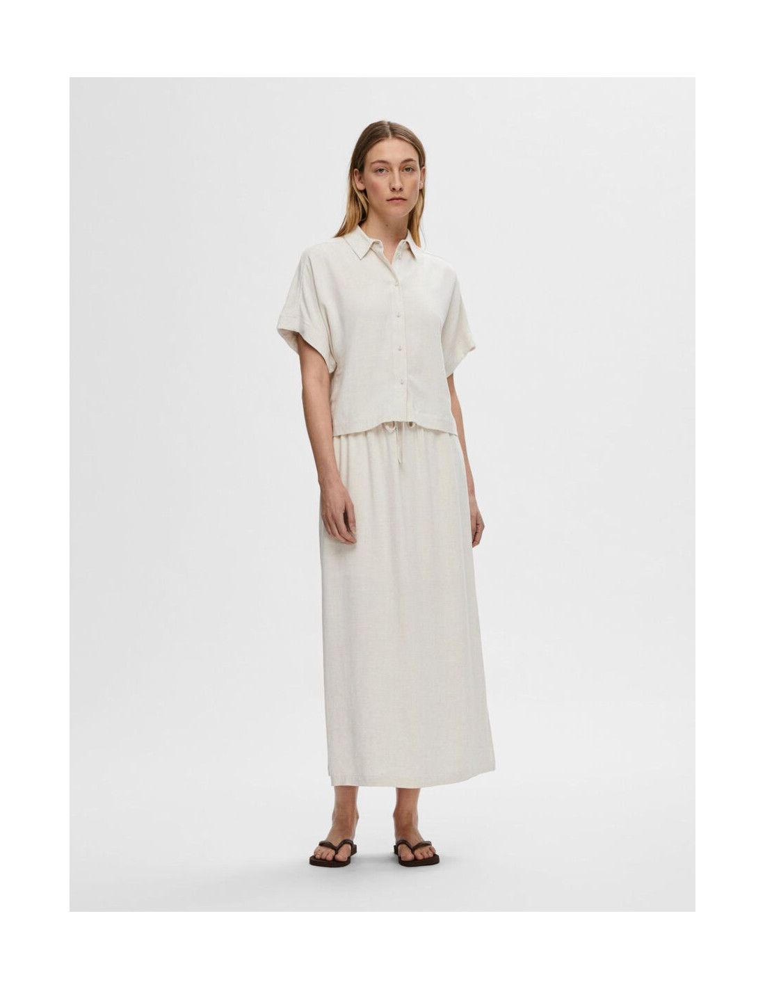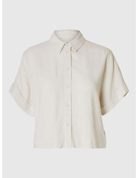 Linne är sommarens obestridda tyg, och denna kortärmade skjorta är designad för att hålla dig sval i solen. Den har en avslappnad, lös passform och kan stylas som ett matchande set med våra shorts i linneblandning eller kjolar från samma kollektion.