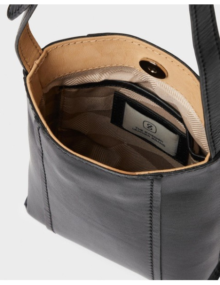 Mobile bag Flor from Saddler. Made from full-grain cow-leather of the highest quality, treated in a Leather Working Group certified tannery. The main compartment has a slip-in pocket inside and closes with a strong magnet. The bag is lined with 100% polyester. Adjustable shoulder strap in leather with a length of max. 129 cm and min. 98 cm. Hardware made of shiny silver-coloured metal.