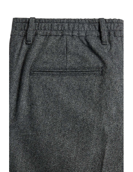 Dessa byxor har tillverkats i en lyxig blandning av flanneltwill och ull med mjuk kashmir och stretchig ull som kommer från det kända italienska väveriet Fortex. De har en skräddarsydd passform med elastiskt midjeband som bidrar till en avslappnad och polerad look. Designen med pressveck och snedställda sidofickor ger en touch av klassiskt skrädderi medan jetfickorna baktill bidrar med praktisk elegans. Det elastiska midjebandet baktill garanterar bra passform och de kompletteras med det stretchiga knäfodret med subtila kritstrecksränder.
