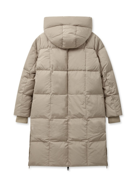 Stay warm in the chilling cold with this super lightweight, yet warm down coat. It has a long fit, hood, heavy zipper, and cool check quilted pattern, filled with responsibly sourced down. High practical collar and side slits, making the fit extra flexible.