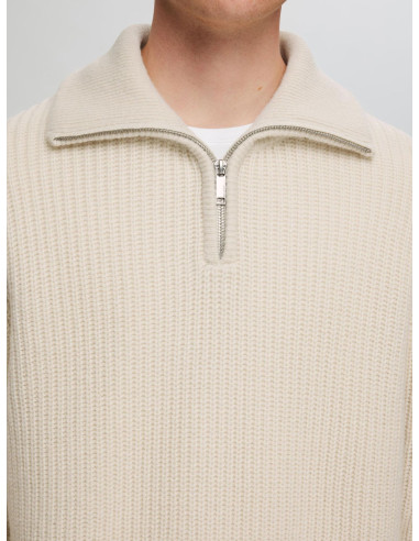 När temperaturen sjunker är ull det självklara valet. LAND Half Zip från Selected är en mjuk och slitstark stickad tröja i certifierad RWS-ull som håller värmen och ger en tidlös look. Den höga halsen med halvlång dragkedja gör den både praktisk och stilren, samtidigt som du kan variera stilen genom att bära den öppen eller stängd. Perfekt att kombinera med T-shirt och chinos för en klassisk vardagsstil.