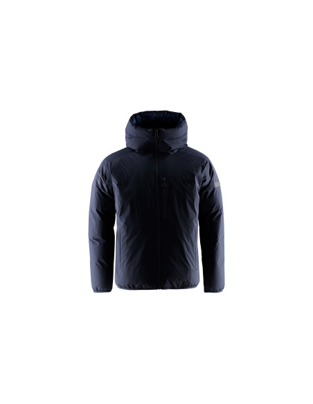 Thunder Reversible Jacket är en vind- och vattenavvisande dunjacka tillverkad av återvunnen nylon och spandex. Unikt för denna jacka är dess vändbara design, vilket ger användaren möjligheten att variera uttrycket i en och samma produkt. Den ena sidan har ett slätvävt tyg, medan motsatt sida har en quiltad design med metallisk lyster för ett sportigare uttryck.