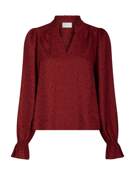 Neo Noir Amara Jacquard Dot Blouse är en elegant och stilfull blus i vinröd nyans med ett subtilt jacquardmönster. Blusen är designad för att kombinera ett klassiskt uttryck med en modern känsla, vilket gör den perfekt för både vardagsbruk och festligare tillfällen. Detaljer som lätta volanger och knäppning framtill bidrar till dess sofistikerade stil. Passformen är bekväm och smickrande.