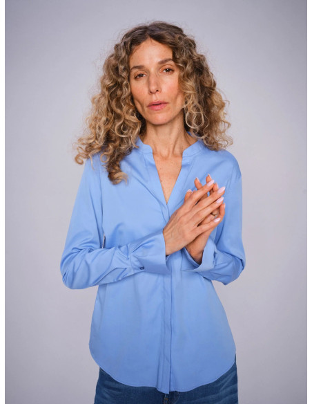 Matthea i färgen Hydrangea är en elegant och mångsidig skjorta som kombinerar stil med komfort.