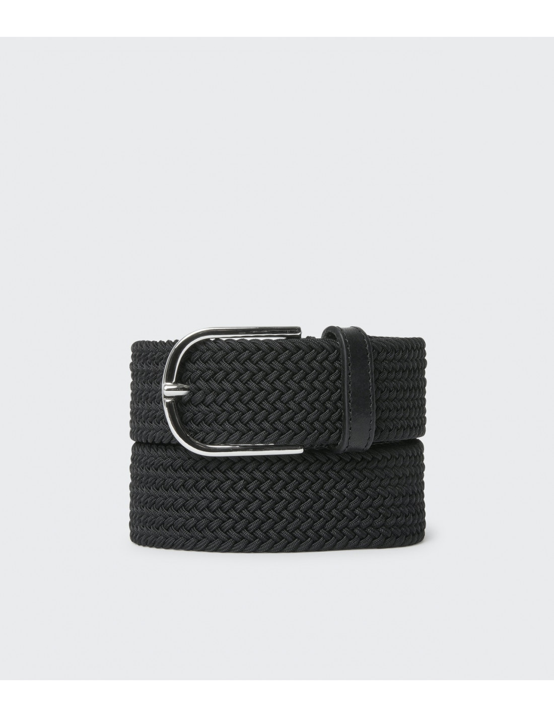 - Elastiskt, stilrent textilbälte med detaljer i läder av hög kvalitet.