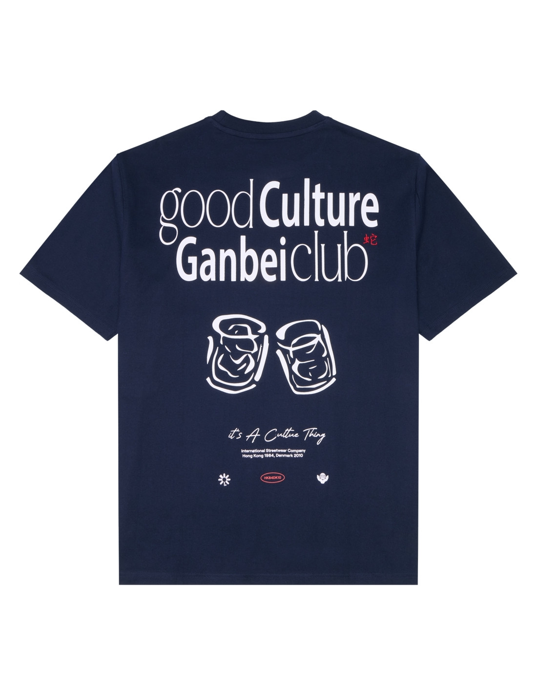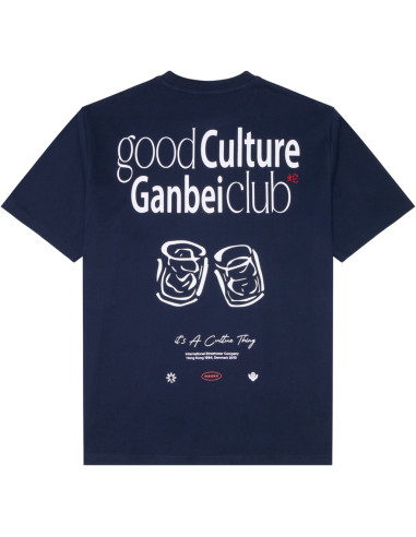 är en t-shirt som kombinerar stil och komfort. Den är tillverkad av 100 % ekologisk bomull, vilket ger en mjuk och hållbar känsla. T-shirten har en rund halsringning och en normal passform, vilket gör den mångsidig och lätt att kombinera med olika outfits. På baksidan pryds den av ett iögonfallande "Ganbei"-tryck, som betyder "skål" på kinesiska och symboliserar gemenskap och firande. Framsidan har ett minimalistiskt tryck för en subtil detalj.