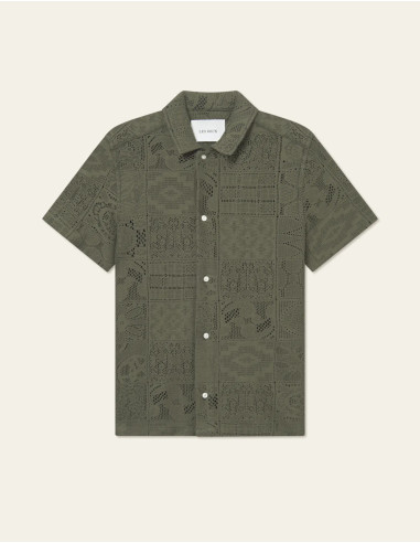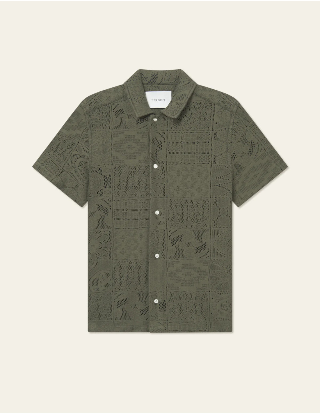 Les Deux Hector Lace SS Shirt är en exklusiv kortärmad skjorta som kombinerar stil och komfort. Tillverkad i en blandning av 85% bomull, 13% polyester och 2% elastan, erbjuder den en mjuk och stretchig känsla. Den intrikata spetsdesignen ger en luftig och andningsbar kvalitet, vilket gör den idealisk för varmare dagar. Skjortan har en klassisk krage, knappar i pärlemorstil och en oplisserad yoke för en ren och modern look. Med en lös passform ger den en avslappnad och bekväm silhuett. Denna skjorta är ett utmärkt val för den stilmedvetna mannen som söker något utöver det vanliga.