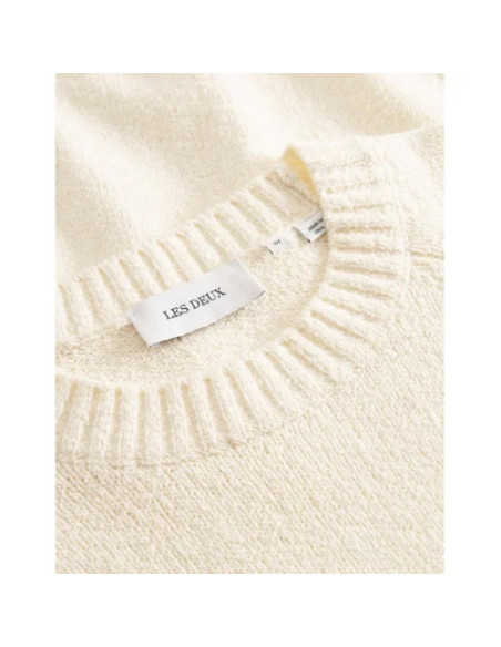 Les Deux Brad Roundneck Knit är en stilren och mångsidig tröja som kombinerar komfort med en modern estetik. Tillverkad i en blandning av 94% bomull och 6% polyester erbjuder den en mjuk och lätt känsla mot huden. Den strukturerade bouclé-väven ger tröjan en rik textur som tillför djup till din outfit