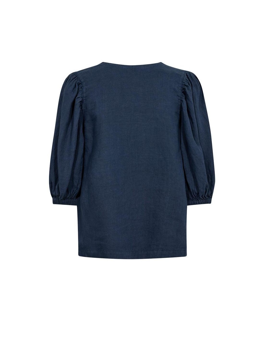 är en elegant och lättblommig blus i linne, perfekt för varmare väder. Den är designad med en avslappnad passform, rund halsringning och diskreta detaljer som ger en sofistikerad känsla. Blusen har korta ärmar och en luftig, bekväm känsla som gör den perfekt för både avslappnade och mer dressade tillfällen. Kombinera den med både jeans och kjolar för en stilren och luftig look. Idealisk för både vardag och fest!