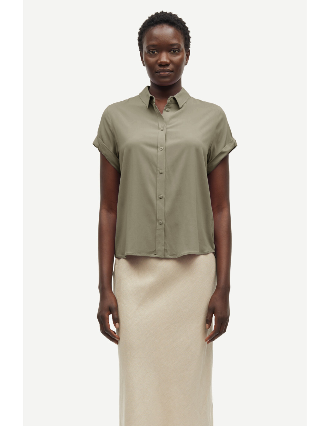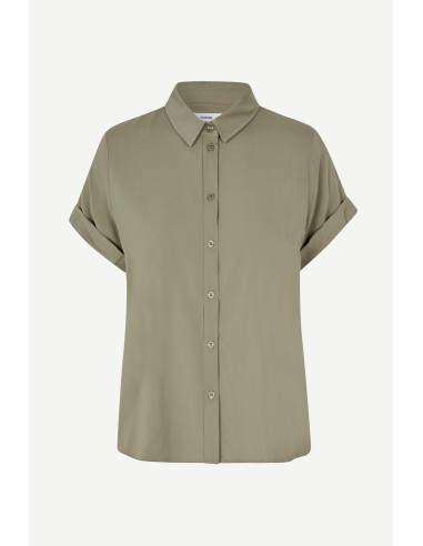 Majan SS Shirt 9942 från Samsøe Samsøe är en kortärmad skjorta med normal passform, designad för att ge en stilren och bekväm look. Skjortan har en klassisk knappstängning framtill och ett axelok med plisserade detaljer som tillför en subtil elegans. Tillverkad av en elastisk LENZING™ ECOVERO™-viskosblandning, erbjuder den både komfort och rörelsefrihet. Detta material är certifierat med EU Ecolabel, vilket garanterar höga miljöstandarder.