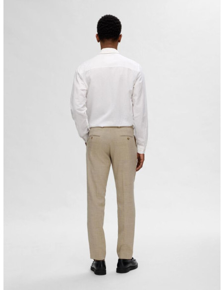 är ett par stilrena och bekväma byxor i linneblandning, perfekta för både avslappnade och mer uppklädda tillfällen. Den smala passformen ger en modern och stilren siluett, medan det luftiga och andningsbara materialet ser till att du håller dig sval och bekväm hela dagen. Den ljusa sandfärgen ger ett sofistikerat och tidlöst intryck, perfekt att matcha med en skjorta eller en linnekavaj.