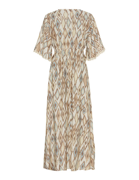 är en elegant och luftig klänning som kombinerar komfort med förfinad kvinnlighet. Knyt-detaljen under bröstet ger en smickrande passform, markerar midjan och säkerställer samtidigt rörelsefrihet. Klänningen är idealisk för både vardag och fest och kan enkelt stylas med flata sandaler för en avslappnad look eller med en lätt kofta för kyligare dagar.