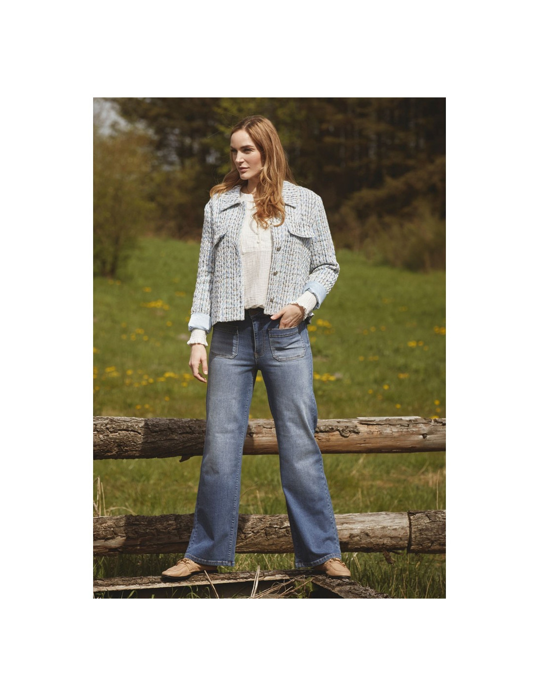 Bologna Wide Jeans från ISAY är ett par trendiga denimbyxor med en lös passform och extra vida ben, vilket ger en modern och avslappnad silhuett. Byxorna har en hög midja med fast linning och bälteshällor, samt stängs med fem knappar framtill. Den moderna 5-ficksdesignen kombinerat med dekorativa sömmar längs byxbenen ger en unik och stilren look. Tillverkade av en bomullsblandning bestående av 98% bomull och 2% elastan, erbjuder dessa jeans optimal komfort och rörelsefrihet. Den tvättade denimfärgen med fina kontraststickningar och rå kant i slutet av byxbenen ger en autentisk och trendig känsla. Dessa jeans är perfekta att styla med en t-shirt för en avslappnad vardagslook