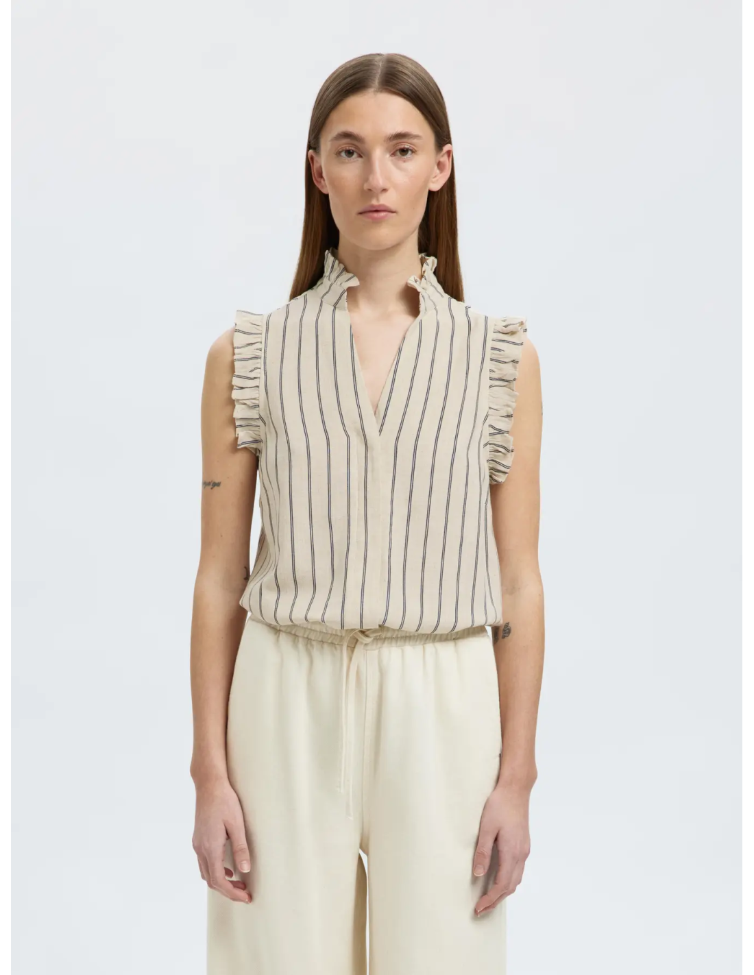 SELECTED - VIVA SL RUFFLE STRIPED SUN TOP