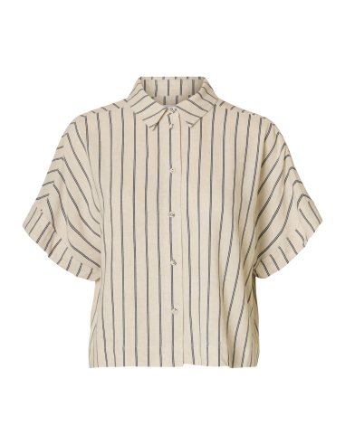 Denna randiga skjorta med kort ärm och cropped passform ger en avslappnad och fräsch stil för varmare dagar. Designad med skjortkrage, uppvikta ärmslut och knapplist fram för en klassisk look. Med sin raka nederkant och regular fit passar den perfekt till både kjol och byxor för en lätt, trendig outfit. Tillverkad i LENZING™ ECOVERO™ viskos och linne, vilket ger en mjuk känsla och en mer hållbar stil.