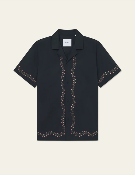 En nostalgisk sommarklassiker med en modern twist. Lesley Embroidery SS Shirt är tillverkad i ekologisk bomullspoplin och är prydd med vackra blomsterbroderier runt kanterna, vilket ger den en exklusiv och detaljerad känsla. Skjortan har en camp-krage, regelbunden axelsöm och boxveck för en avslappnad passform. Den raka fållen ger en stilren finish som gör den lätt att kombinera med både jeans och shorts för en trendig, somrig look.