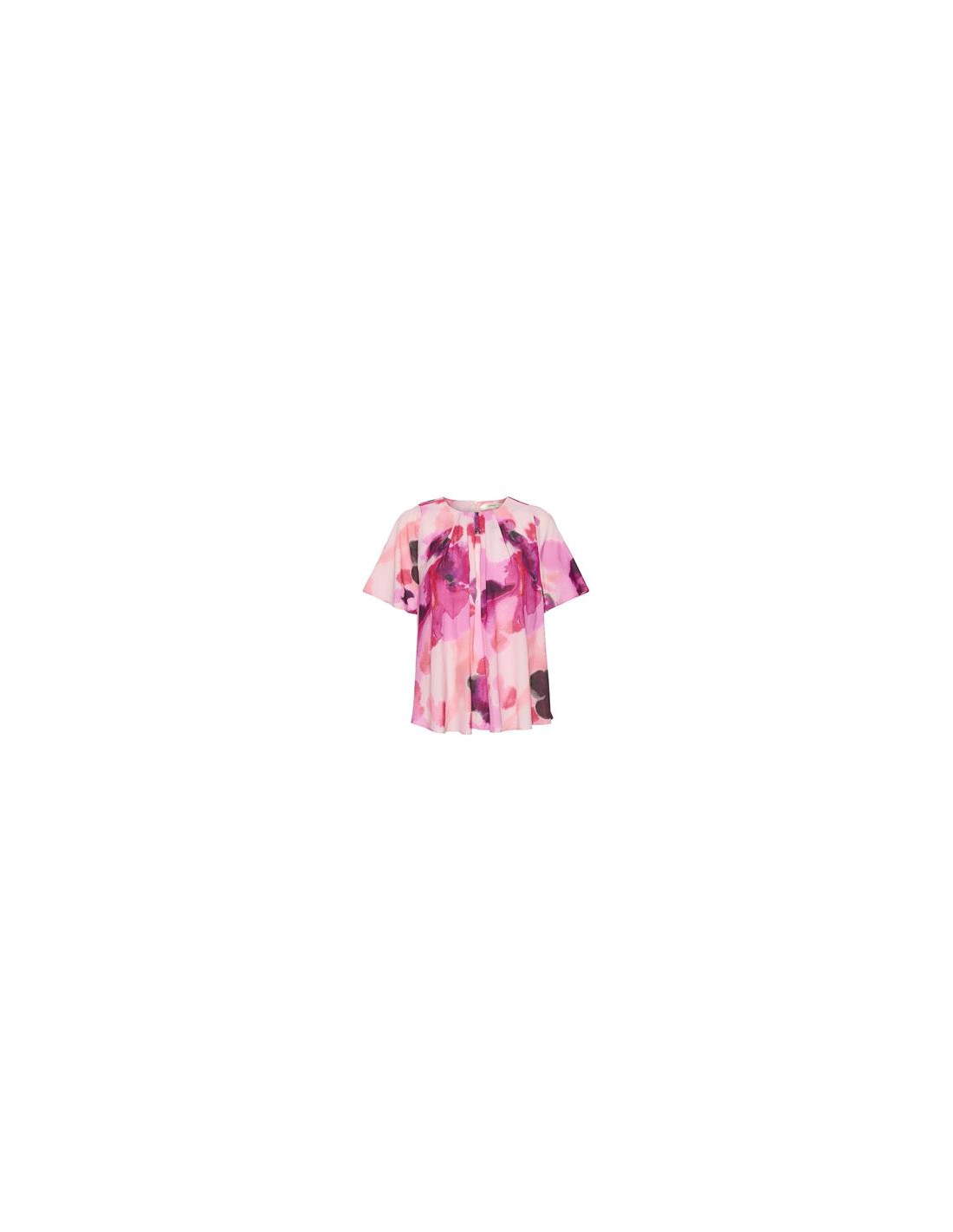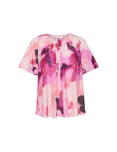 är en stilren och luftig blus i vävt tyg med kort ärm och A-linjeformad passform som ger en feminin siluett. Tillverkad i en mjuk blandning av 60% bomull och 40% viskos, vilket ger både komfort och struktur. En mångsidig topp som passar perfekt till både vardag och jobb, särskilt under vår- och sommarsäsong.