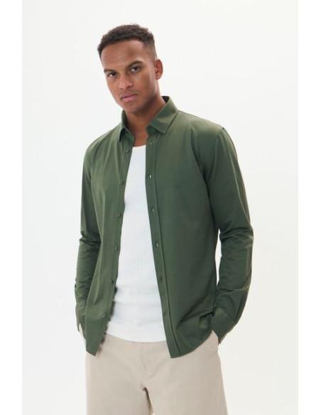 är en mångsidig herrskjorta som kombinerar klassisk design med modern komfort. Tillverkad i en mjuk jerseyblandning av 58% bomull och 42% polyester, erbjuder den en behaglig känsla och god rörelsefrihet. Den har en regular fit-passform, lång ärm och en stilren knappslå framtill. Skjortan är perfekt för både vardag och mer uppklädda tillfällen.