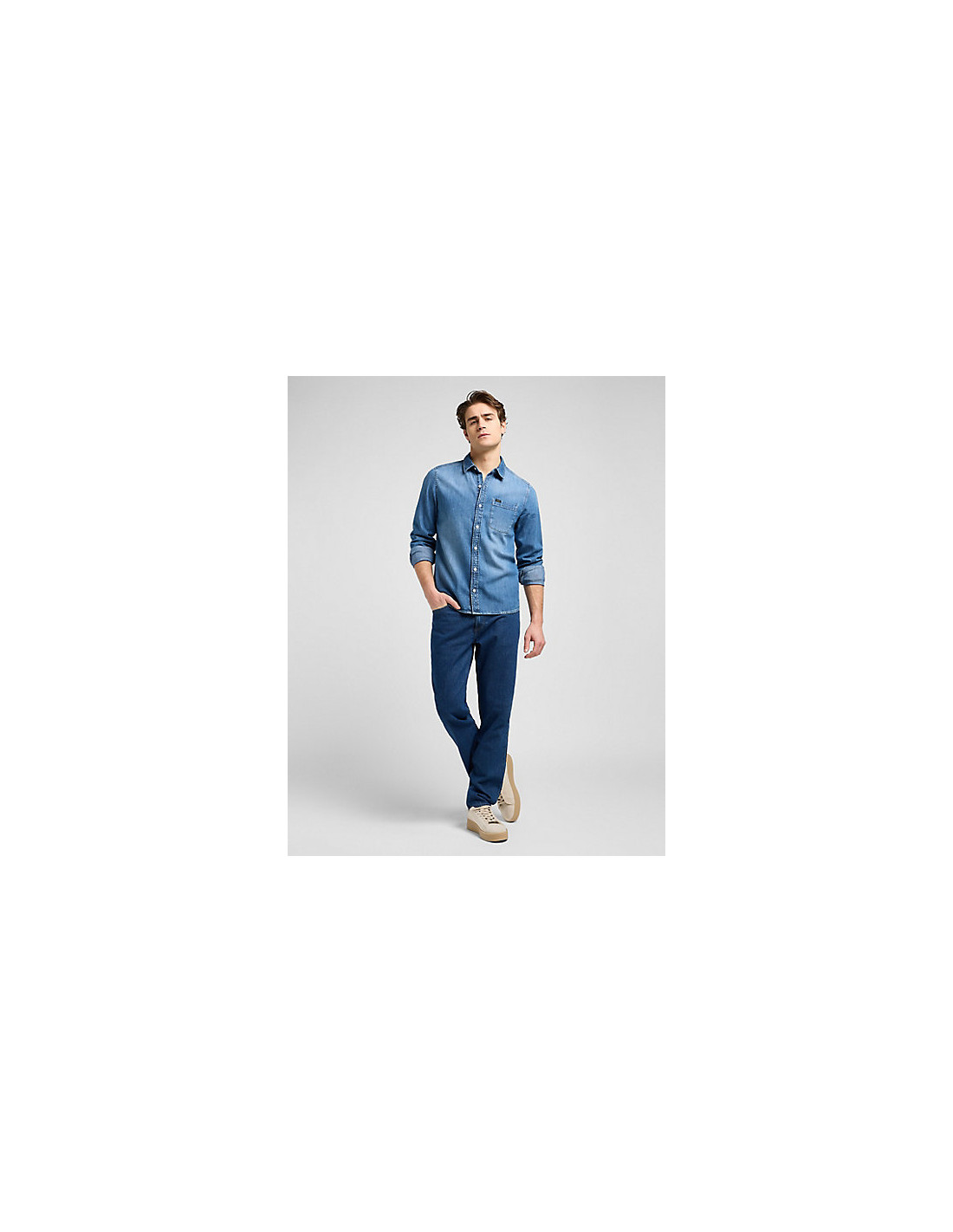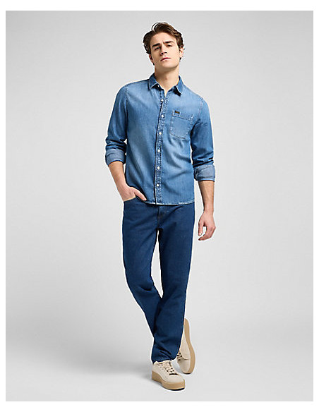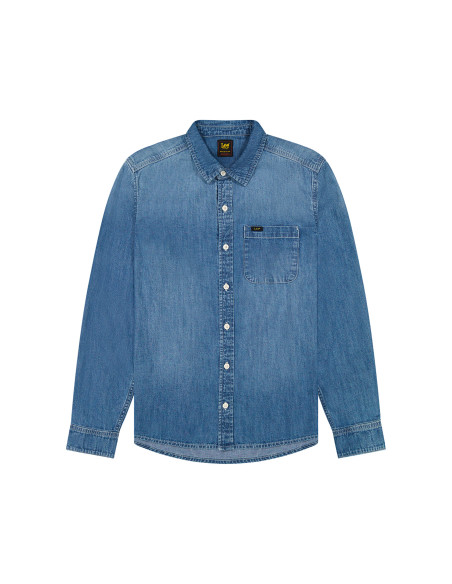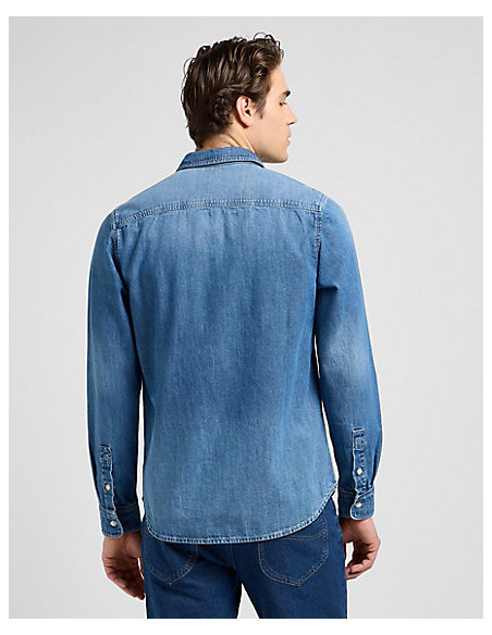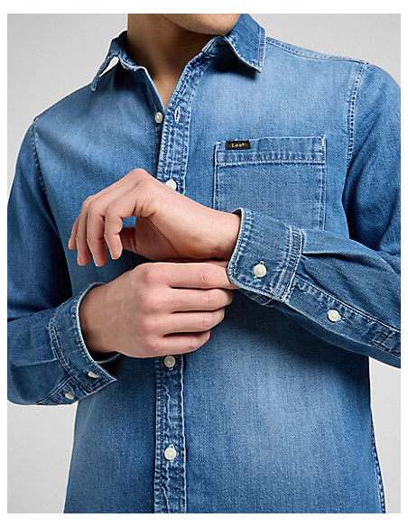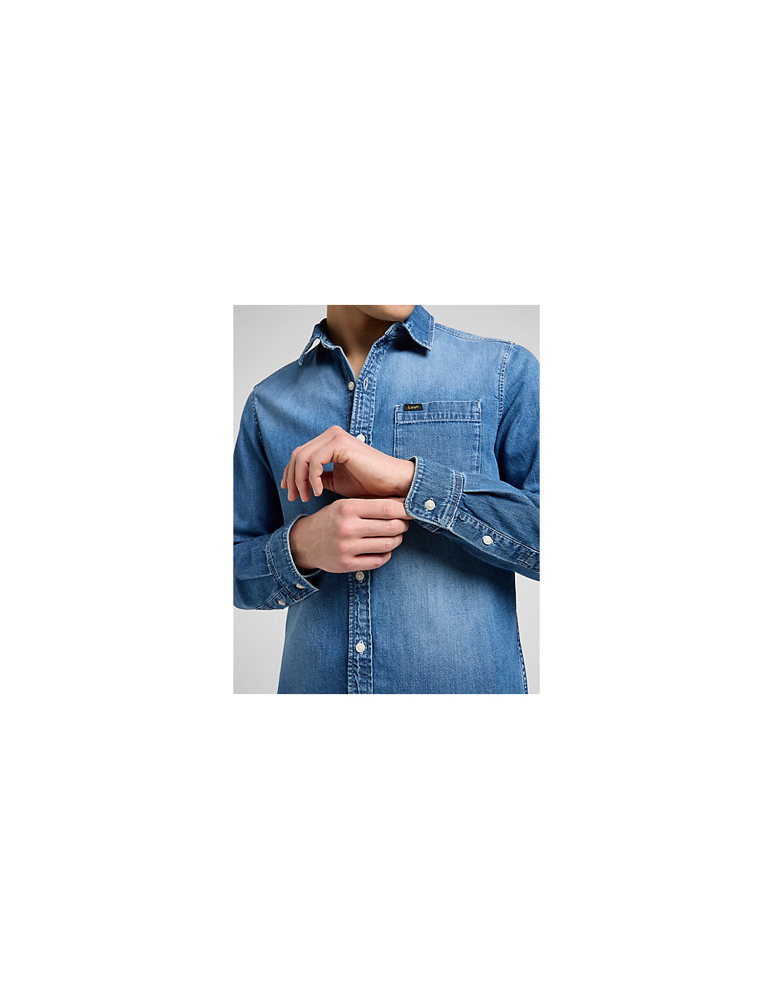 från Lee är en klassisk denimskjorta med en avslappnad silhuett, bröstficka och subtil logoflik. Skjortan är tillverkad i 100 % bomull, varav 20 % är återvunnen, vilket gör den både hållbar och bekväm. Den lätta denimkvaliteten i tvätten Mid Blue ger ett autentiskt vintageintryck med subtilt slitna detaljer.
