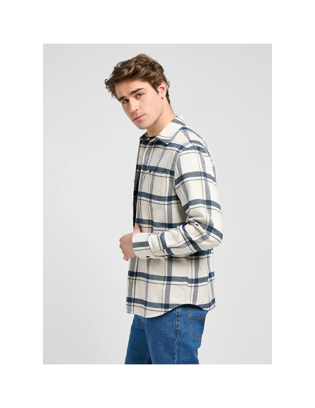 är en modern hybrid mellan skjorta och overshirt – lättare än en shacket men med samma avslappnade silhuett. Skjortan har en rymlig passform, knappstängning, knappade ärmslut och en bröstficka. Bär den öppen över en t-shirt eller stängd för ett mer dressat uttryck.