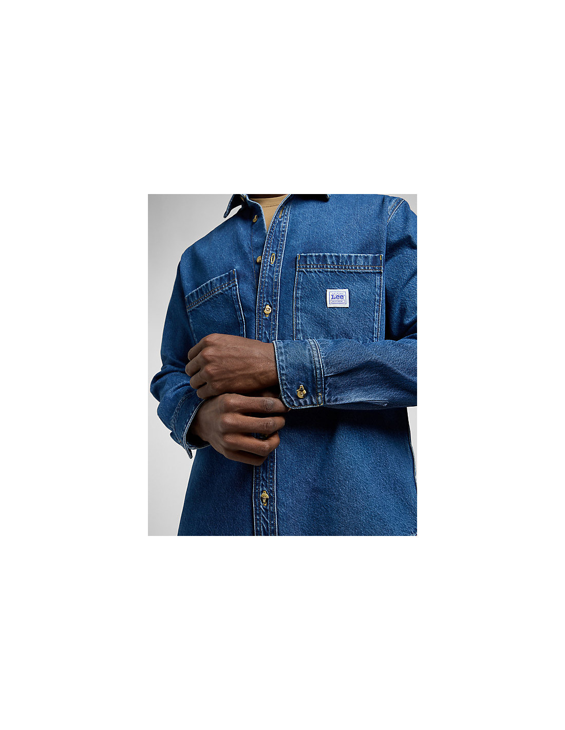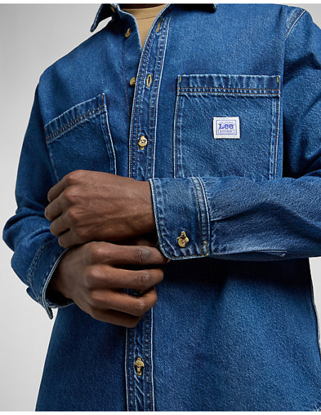 En avslappnad denimskjorta inspirerad av klassisk workwear-stil.
