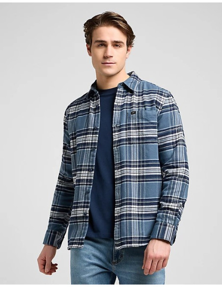 En avslappnad skjorta i klassisk workwear-stil – perfekt för säsongsskiftet. LEE Mercantile Shirt har en skön relaxed fit, enkel bröstficka och knappar vid manschetterna. Tillverkad i mellantjock 100 % regenerativ bomull med rutigt mönster i blått, svart och vitt. Bär den knäppt som skjorta eller öppen som lätt overshirt.
