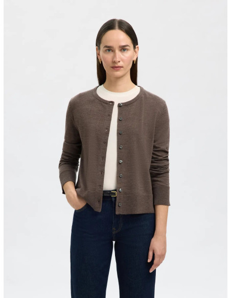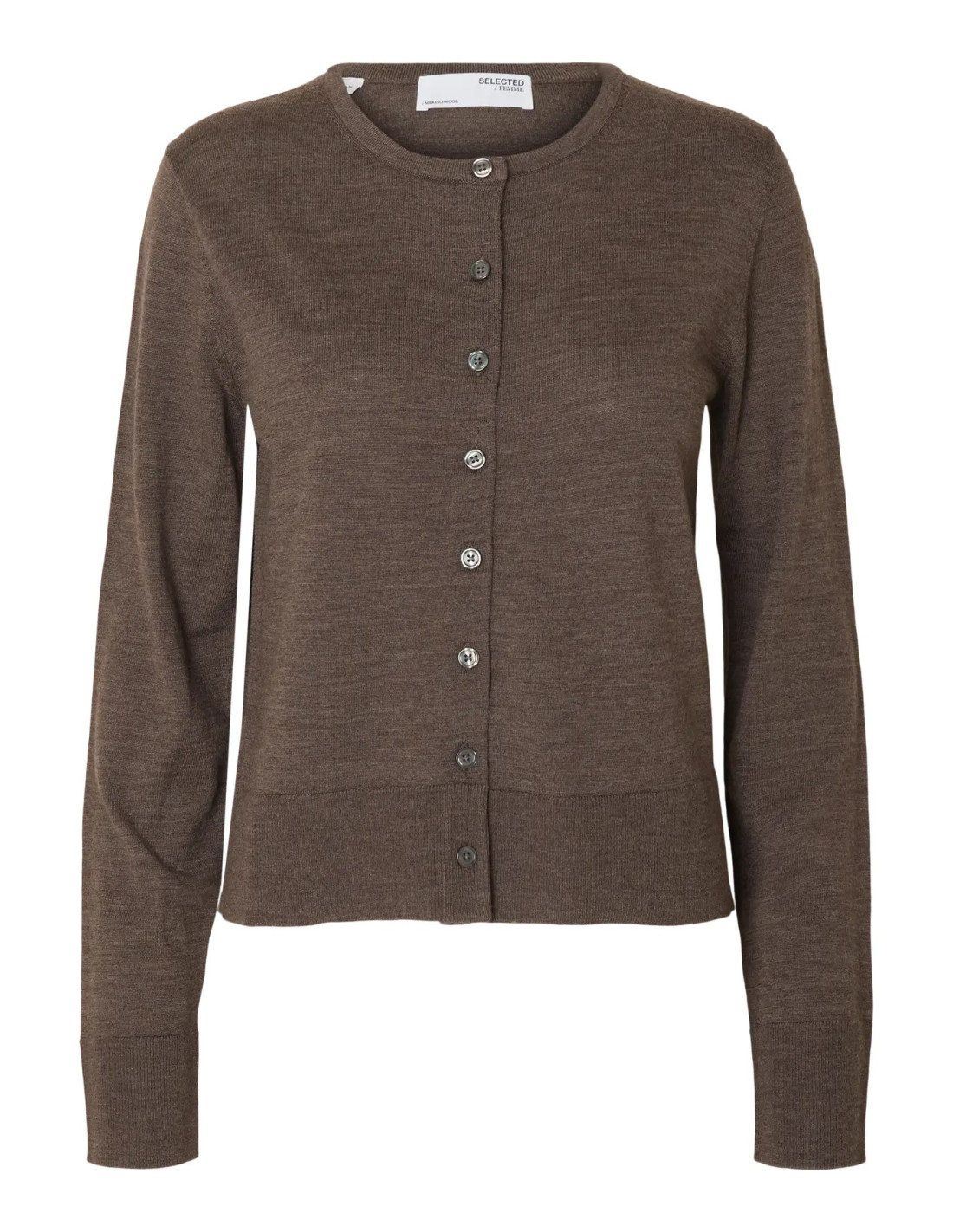 från Selected Femme är en tidlös kofta i 100% certifierad merinoull med rund hals, knappstängning och ribbade muddar. Den har en klassisk regular fit och är tillverkad med hänsyn till både komfort och djurvälfärd. Ett mjukt och stilrent lager att bära över klänning, blus eller t-shirt.