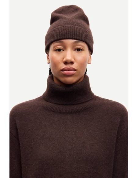 från Samsøe Samsøe är en ribbstickad mössa med regular fit, tillverkad i en värmande blandning av ull och alpacka. Den elastiska kvaliteten ger en bekväm passform, och det tidlösa uttrycket gör den till ett givet val för kalla dagar. Produkten är RWS-certifierad, vilket garanterar att djurens välfärd och hållbara metoder har följts från gård till färdig mössa.