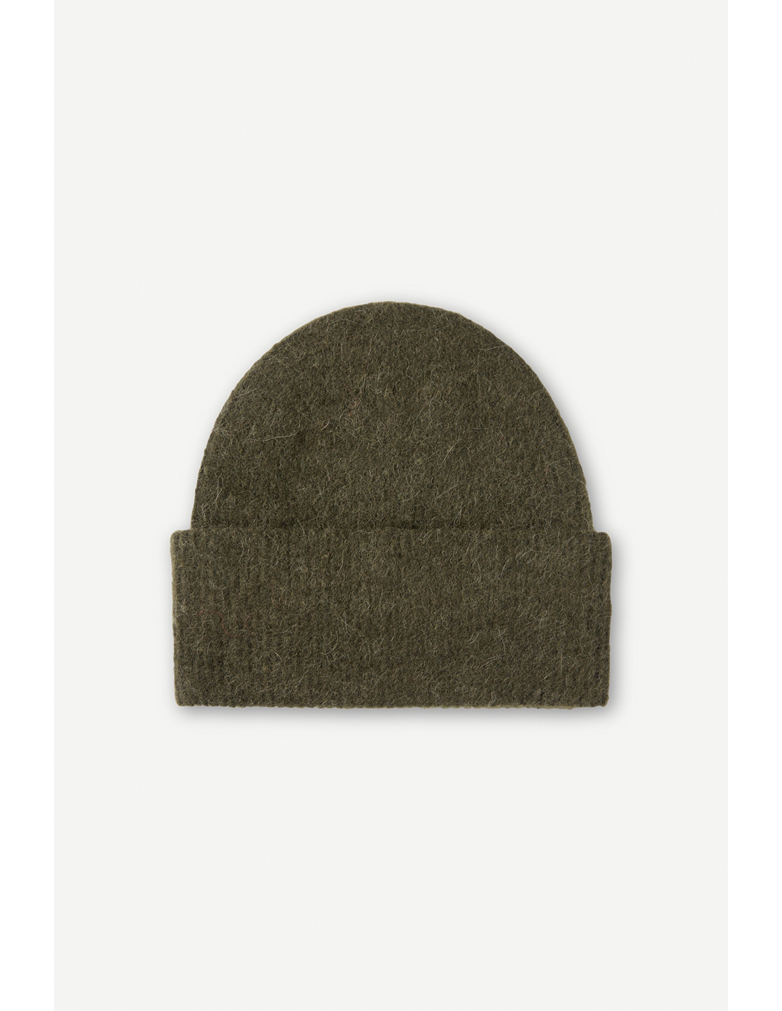 från Samsøe Samsøe är en ribbstickad mössa i mjuk och stretchig ull- och alpackablandning. Med normal passform och RWS-certifierat material är den både bekväm och ansvarsfull. Den djupt gröna nyansen gör mössan till ett stilsäkert val för kalla dagar.
