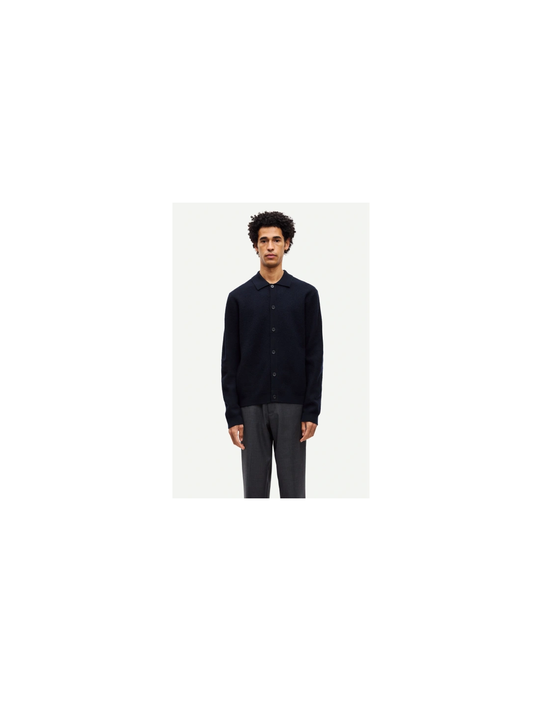 från Samsøe Samsøe är en stilren kofta med krage, tillverkad i 100 % RWS-certifierad merinoull. Den har en rak passform, knappstängning framtill samt ribbstickade muddar och fåll. Ett mångsidigt plagg som kombinerar värme, komfort och ansvarsfull produktion.