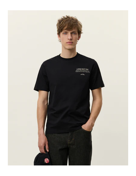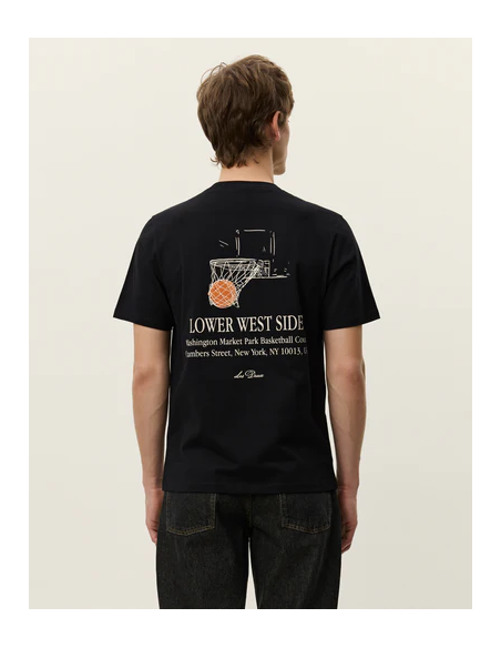 från Les Deux är en lätt och bekväm t-shirt i mjuk bomullsjersey med tryck på både bröst och rygg. Den klassiska crew neck-designen och raka fållen ger en ren silhuett med tydlig streetwear-känsla.