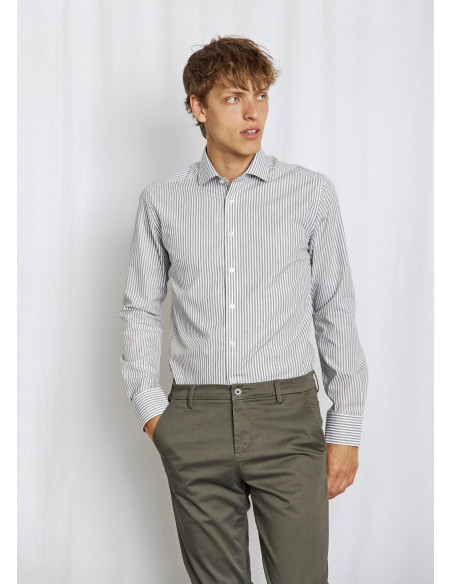 Lopez Shirt från Bruun & Stengade är en stilren skjorta i slim fit för en modern och skräddad siluett. Tillverkad i 100% bomull i solid dobbyväv som är behandlad för att minimera behovet av strykning. Den klassiska designen med cutaway-krage, fransk placket med marinblå pärlknappar och justerbara manschetter gör skjortan till ett mångsidigt plagg för...