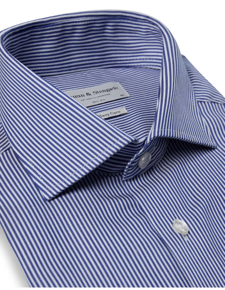 Lopez Shirt från Bruun & Stengade är en stilren skjorta i slim fit för en modern och skräddad siluett. Tillverkad i 100% bomull i solid dobbyväv som är behandlad för att minimera behovet av strykning. Den klassiska designen med cutaway-krage, fransk placket med marinblå pärlknappar och justerbara manschetter gör skjortan till ett mångsidigt plagg för...