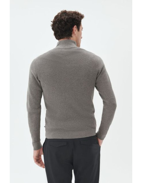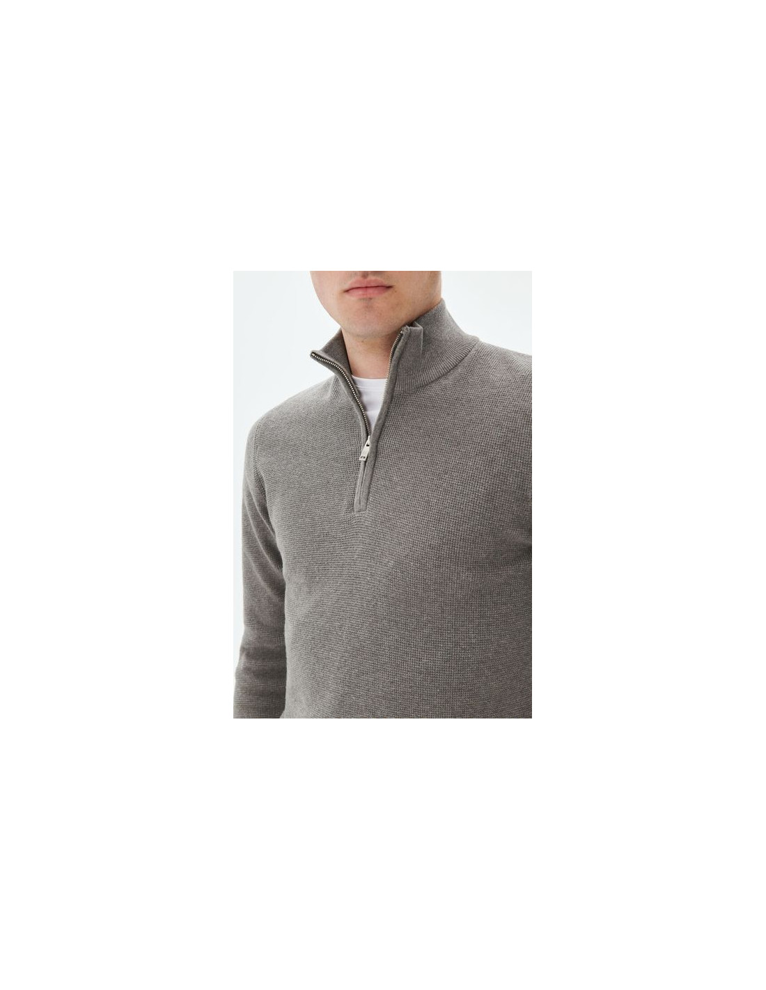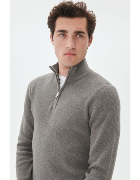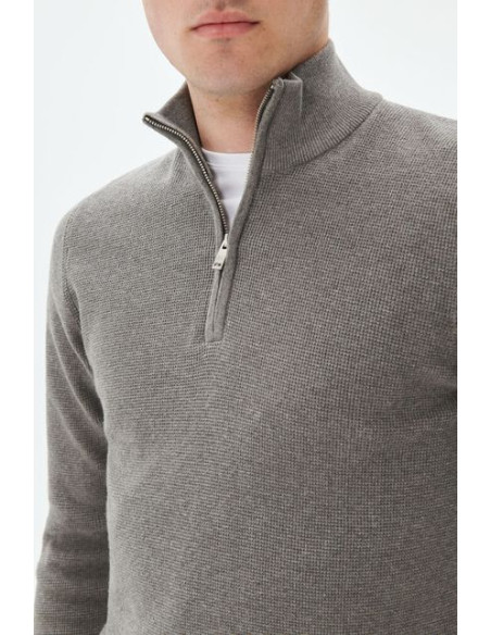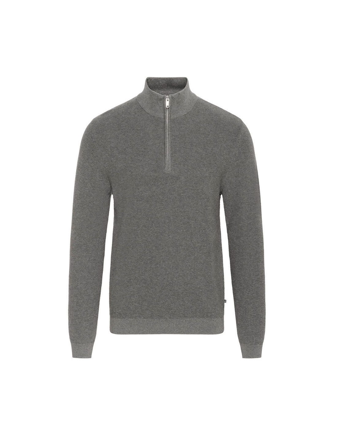 Lagoon Zip Pullover från Matinique är en stilren herrtröja med kvartdragkedja som kombinerar komfort och mångsidighet. Modellen har normal passform, hög krage och ribbade avslut som ger en tidlös siluett. Den är stickad i en mjuk bomullsblandning som gör den behaglig att bära och enkel att styla både till vardags och mer uppklädda tillfällen. Färgen Medium Grey Melange ger ett klassiskt och lättmatchat uttryck.