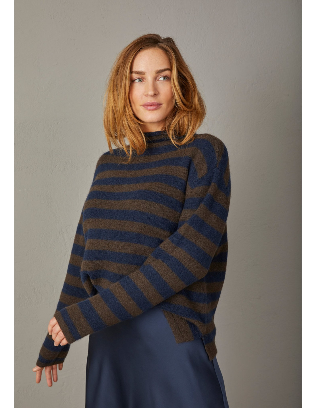 Anna Highneck Pullover är en mjuk och varm stickad tröja i lyxig ull- och mohairblandning. Den höga kragen och den lätt avslappnade passformen ger en tidlös silhuett som är lika bekväm som stilfull. Perfekt att bära till byxor eller kjol under höst och vinter för en klassisk, värmande look.