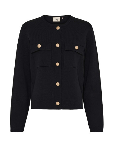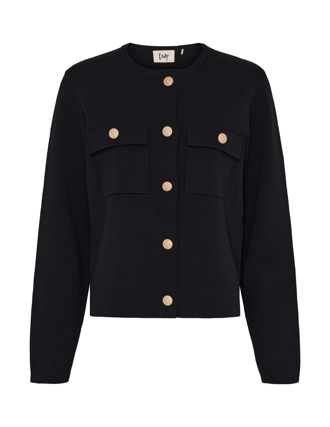 Jena Pocket Cardigan är en klassisk och elegant kofta i kortare, lätt figursydd modell som ger en feminin silhuett. De dekorativa guldknapparna och bröstfickorna med lock tillför en exklusiv känsla, medan den mjuka viskosblandningen ger komfort hela dagen. Perfekt att styla för både kontor och vardag.
